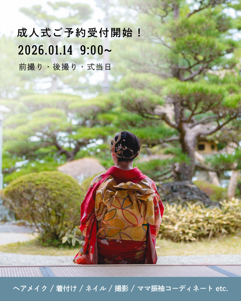 本日9:00から成人式前撮り・後撮り・式当日のご予約受付を開始いたします👘