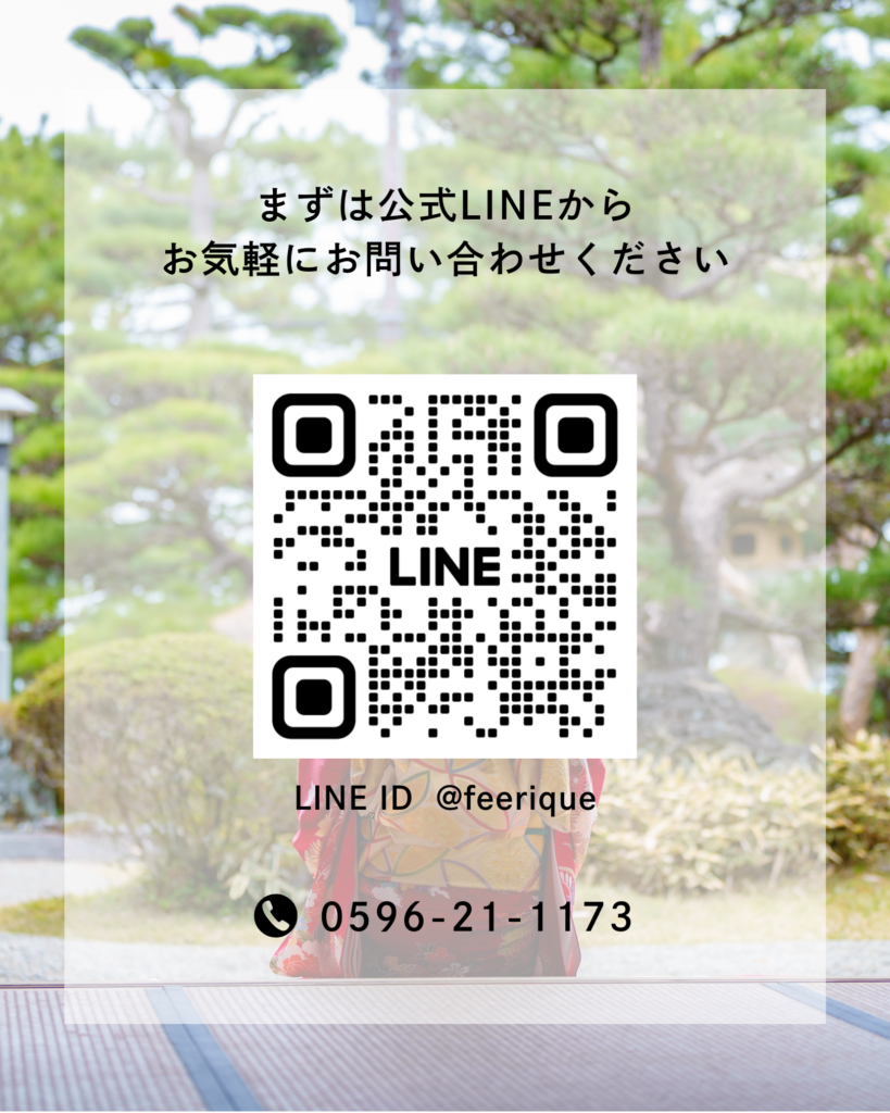 お申し込みの流れは、【LINEにてお問い合わせ/仮予約】→【カウンセリング/お見積り/お申し込み(ご来店)】→【日程等の詳細お打ち合わせ】となります。